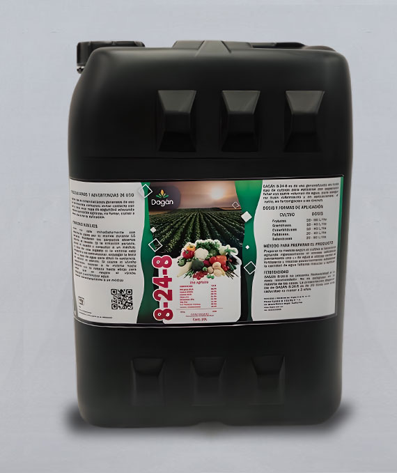 Dagán 8-24-8 es de uso generalizado en todo tipo de cultivos para aplicarse por aspersión foliar con suave volumen de agua, para asegurar buen cubrimiento y en aplicaciones; al suelo, en fertiirrigación o en drench.